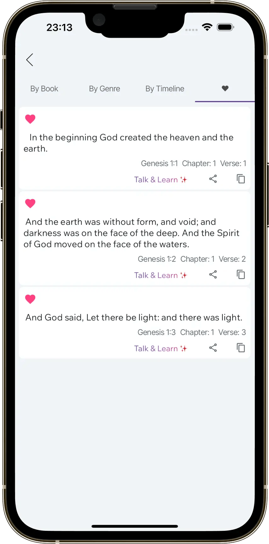 Read through Scripture at your own pace. Save your favorite verses, share insights, and dive deeper with Talk & Learn.