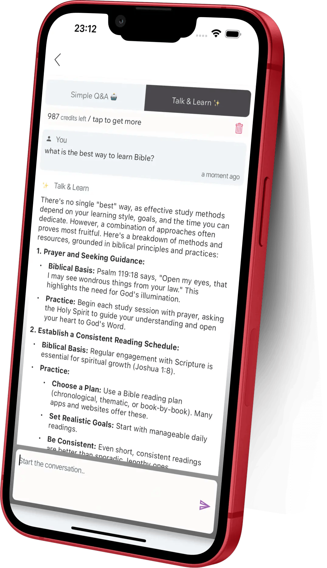Have a Bible question? Our Talk & Learn feature lets you explore Scripture in real time, with clear explanations that make study easier.